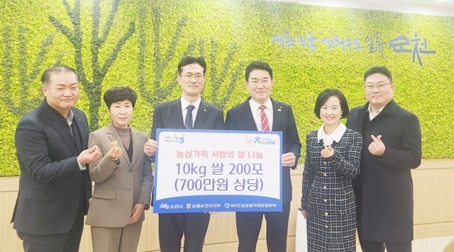 이날 전달식에서는 순천시에서 생산된 나누우리 쌀 10kg 200포(700만원 상당)가 순천시에 전달됐으며, 기탁된 쌀은 순천 관내 저소득 가구와 복지시설 등 도움이 필요한 이웃들에게 순차적으로 전달될 예정이다.