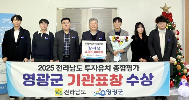 [위키트리 광주전남취재본부 노해섭 기자]영광군은 12월 24일 전라남도가 주관한 ‘2025년 투자유치 종합평가’에서 장려상을 수상했다.