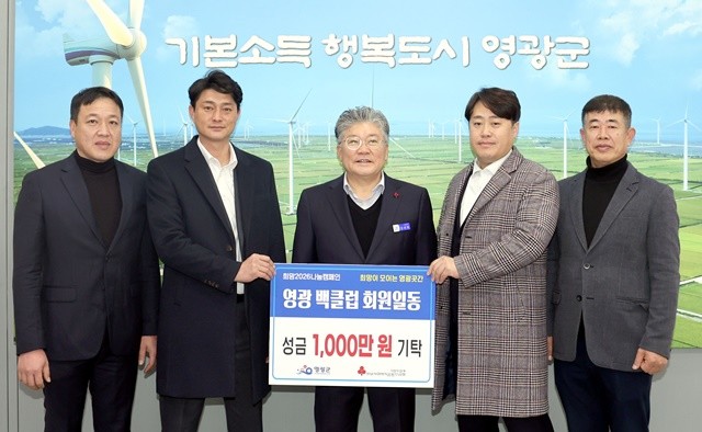 [위키트리 광주전남취재본부 노해섭 기자]영광백클럽(회장 조영민)은 12월 24일 ‘희망2025 나눔캠페인’의 일환으로 영광군 공식 연합모금처인 ‘희망이 모이는 영광곳간’에 이웃돕기 성금 1,000만 원을 기탁했다.