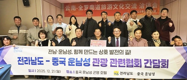 [위키트리 광주전남취재본부 노해섭 기자] 전라남도(도지사 김영록)는 중국 운남성 곤명 호텔에서 운남성 지역 여행 관련 협회와 간담회를 최근 열어 전남의 다양한 관광 매력을 소개하며, ‘전남 사랑애 서포터즈’와 연계한 상호 교류방안을 논의했다고 밝혔다.