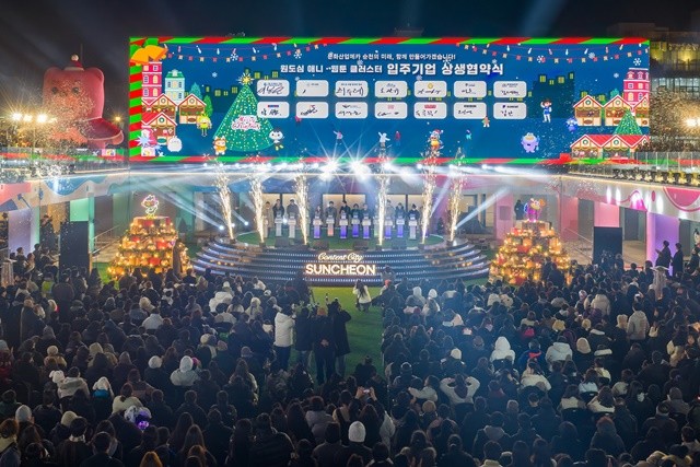 행사는 크리스마스 이브를 맞아 다양한 콘텐츠로 채워졌다. 시 마스코트인 루미·뚱이의 개회로 남문터광장과 캐릭터 트리 점등을 통해 열림식의 시작을 알렸다. 이어 올해 하반기, 원도심에 입주하게 된 11개의 콘텐츠기업과 상생협약식뿐만 아니라 2025 순천 IP 창·제작지원사업(애니․웹툰 분야)의 우수작품 시상도 이뤄졌다.