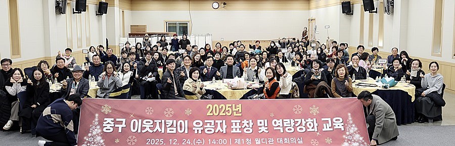 이를 위해 중구는 지난 24일 중구 제1청 대회의실에서 김정헌 중구청장, 중구 이웃지킴이 등 100여 명이 참석한 가운데 ‘중구 이웃지킴이 유공자 표창 및 역량 강화 교육’을 개최했다.