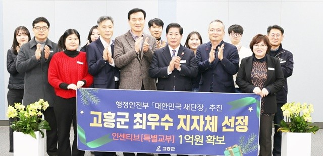 [위키트리 광주전남취재본부 노해섭 기자]고흥군(군수 공영민)은 행정안전부가 주관한 ‘대한민국 새단장’ 추진 우수 자치단체 평가에서 최우수 지자체로 선정돼 특별교부세 1억 원을 확보했다고 밝혔다.