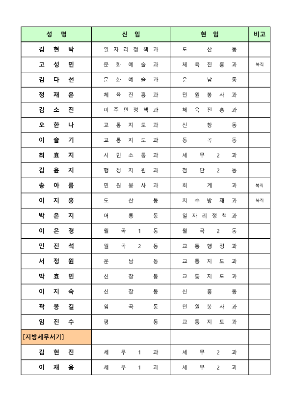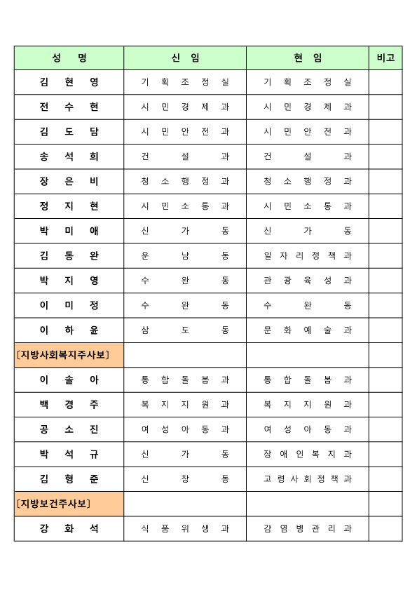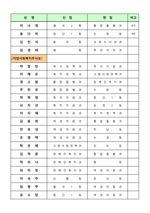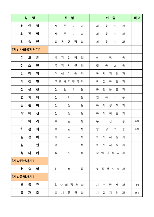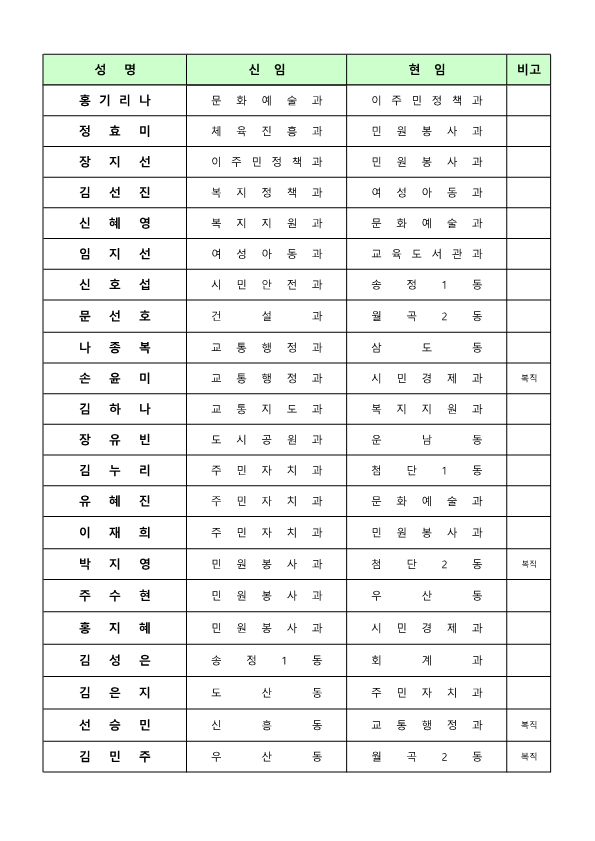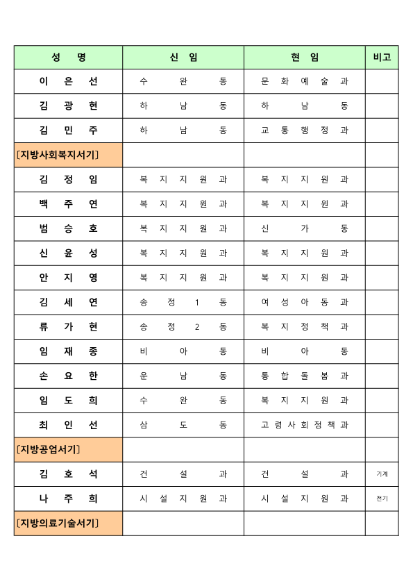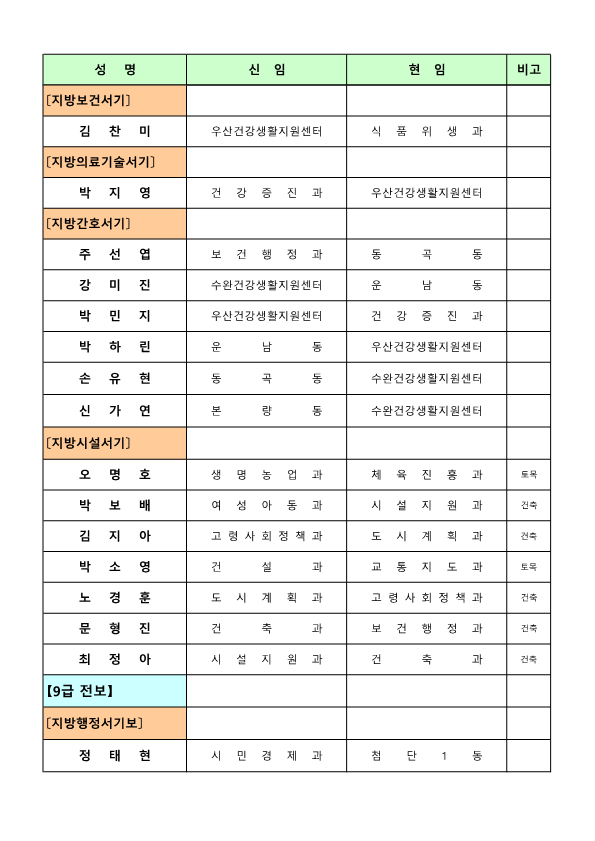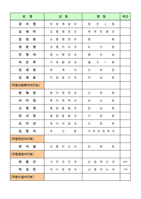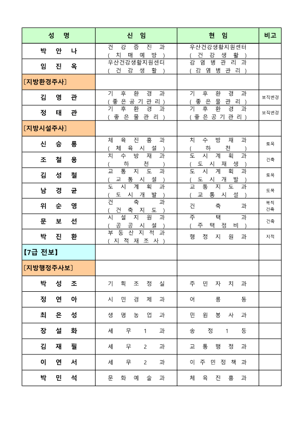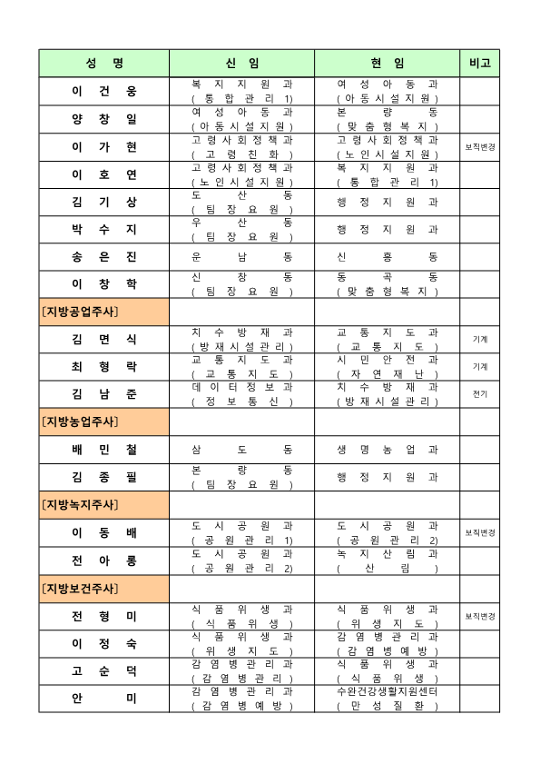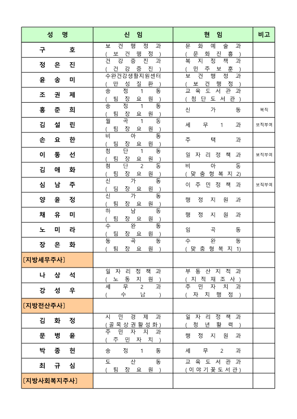 [인사]광주시 광산구,6급 이하 승진 및 전보