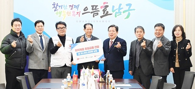 [위키트리 광주전남취재본부 노해섭 기자]㈜럭키산업 박흥석 회장은 대한적십자사 광주전남지사와 연계하여 30일 광주시 남구청을 방문, 관내 취약계층 지원을 위한 기부금 및 생필품세트 등 총 3,000만원 상당을 남구에 전달했다.