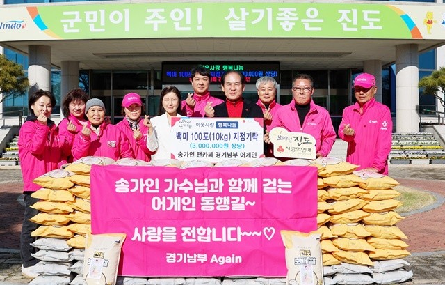 가수 송가인의 팬들이 올해도 어김없이 그녀의 고향 진도에 따뜻한 사랑을 전하며, 성숙한 팬덤 문화의 좋은 본보기가 되고 있다. 송가인 공식 팬클럽 '경기남부 어게인' 회원들은 최근 진도군을 직접 찾아, 지역의 어려운 이웃들을 위해 써달라며 300만 원 상당의 백미 100포를 전달했다.