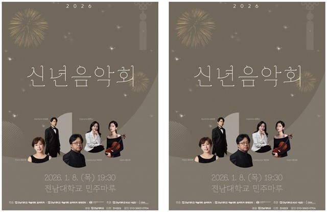 한편, 2026 신년음악회 티켓 예매는 네이버 예약을 통해 가능하며, 공연 관련 문의는 전남대학교 예술대학 음악학과 또는 예나엔터테인먼트로 하면 된다.