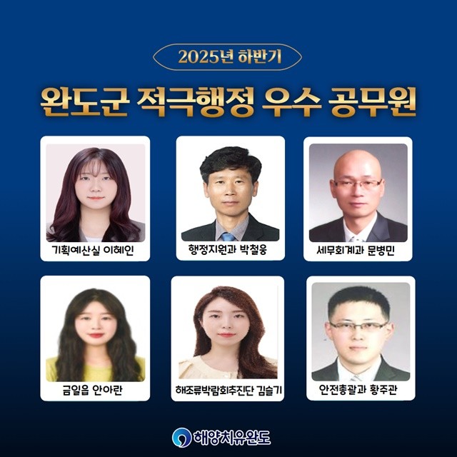 [위키트리 광주전남취재본부 노해섭 기자]주민의 가려운 곳을 긁어주기 위해 스스로 ‘모바일 민원실’이 되고, 인공지능(AI) 기술을 바다로 가져와 어민들의 시름을 덜어주는 공무원들. 관행이라는 낡은 옷을 과감히 벗어 던지고, 오직 군민의 안전과 편익을 위해 머리를 맞댄 팀. 전남 완도군이 2025년 하반기, 수동적인 행정의 틀을 깨고 군민의 삶에 실질적인 변화를 만들어 낸 ‘적극행정 어벤져스’ 4명과 2개 팀을 선정해 발표했다.