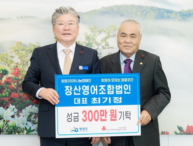[위키트리 광주전남취재본부 노해섭 기자]12월 30일, 영광군 백수읍 장산로에 위치한 장산영어조합법인(대표 최기정)은 한파로 어려움을 겪고 있는 지역 내 위기가정을 돕고자 성금 300만 원을 ‘희망이 모이는 영광곳간’에 기탁했다.