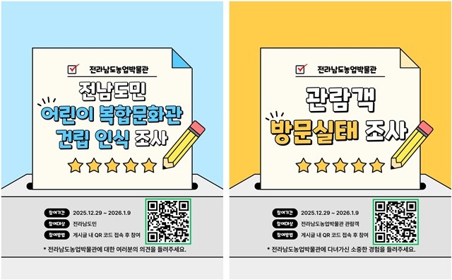 김옥경 전남농업박물관장은 “설문을 통해 수렴된 의견을 관람객 중심의 박물관 운영과 전남도만의 농업 특색을 살린 어린이 복합문화공간 조성에 적극 접목하겠다”고 밝혔다.