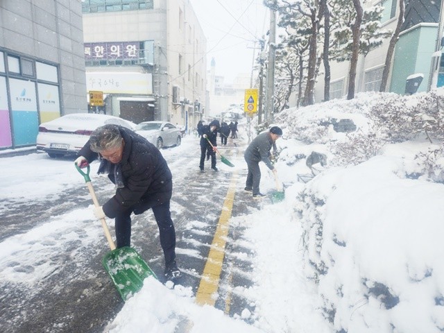 군민의 안전한 출근길과 등굣길을 위한 제설작업 노력