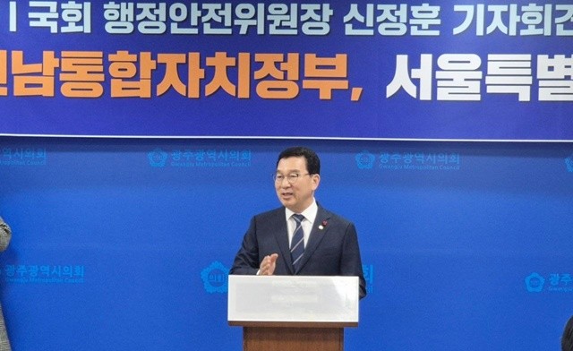 6일 광주광역시의회 기자회견장은 비장함이 감돌았다. 마이크를 잡은 신정훈 위원장은 강기정 광주시장과 김영록 전남지사의 통합 합의, 그리고 이재명 대통령의 지지 선언이 맞물린 현 상황을 "두 번 다시 오지 않을 천재일우(千載一遇)"라고 정의했다.