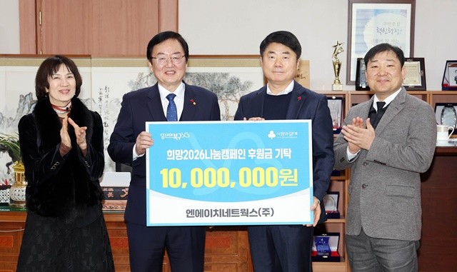 광주 북구(청장 문인)는 7일 청장실에서 엔에이치네트웍스(주)(대표 이근신·오른쪽 두번째)로부터 지역 돌봄이웃들을 위한 희망2026나눔캠페인 사랑의 후원금 1000만원을 기탁 받았다.