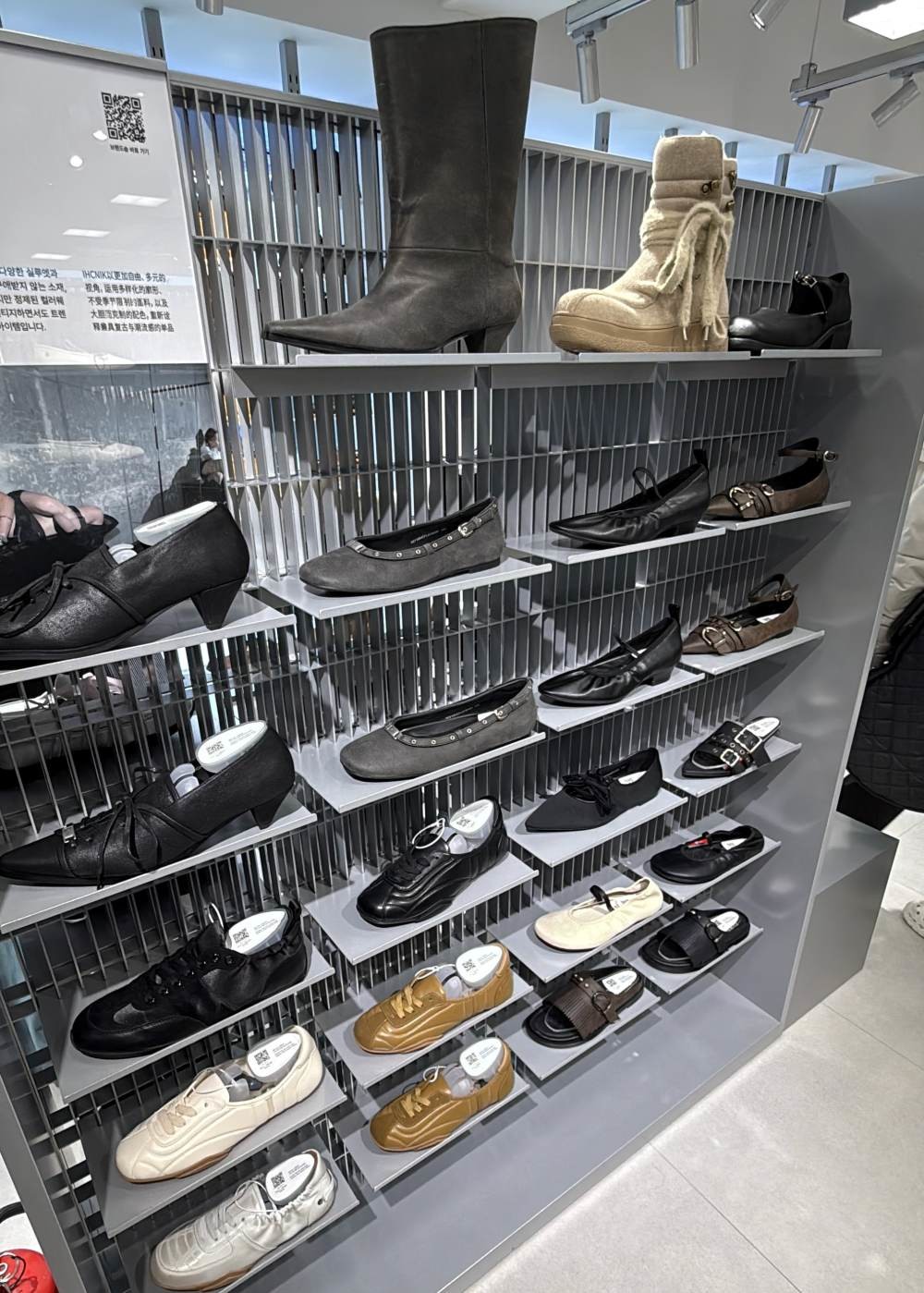 마음에 드는 신발을 발견했다면 QR코드만 찍으면 끝. 무신사 회원가, 내 사이즈 재고 여부, 실제 착용 코디까지 스마트폰으로 바로 확인할 수 있다. 온라인에서 누리던 혜택을 오프라인 매장에서도 그대로 경험하는 셈이다.
