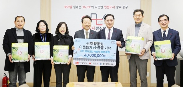 [위키트리 광주전남취재본부 노해섭 기자]광주시 동구는 지역 향토기업 ㈜럭키산업(회장 박흥석)과 지역 사회단체 광동회가 인문도시 동구의 가치에 공감해 관내 돌봄 이웃을 위해 총 4천만 원 규모의 나눔을 실천했다고 밝혔다.