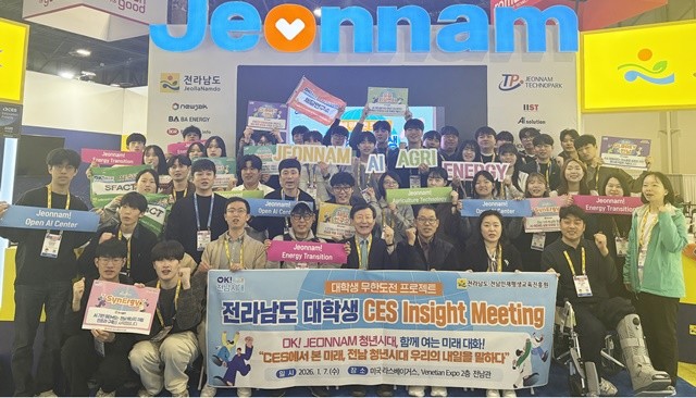 [위키트리 광주전남취재본부 노해섭 기자]전남인재평생교육진흥원은 세계 최대 IT·가전 박람회인 CES 2026 전남도관에서 지역 대학생들과 간담회를 열어 에너지와 해양, 바이오 등 다양한 분야 박람회 핵심 기술 트렌드와 전남에 활용할 아이디어를 공유했다.