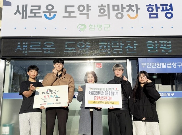 김미숙 나산면장은 "아이들이 고사리손으로 직접 노력해서 번 돈을 자신들을 위해 쓰지 않고, 이웃을 위해 내놓은 그 마음이 너무나 대견하고 아름답다"며 "이 소중한 나눔의 씨앗이 지역 사회 곳곳에 퍼져나가 더 따뜻한 함평을 만드는 계기가 되길 바란다"고 감사의 뜻을 전했다.