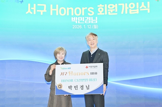 [위키트리 광주전남취재본부 노해섭 기자]광주시 서구(구청장 김이강)는 12일 서구청 1층 기부자 명예의 전당에서 박민경 씨의 서구아너스 회원 가입식을 가졌다. 광주 서구 제공