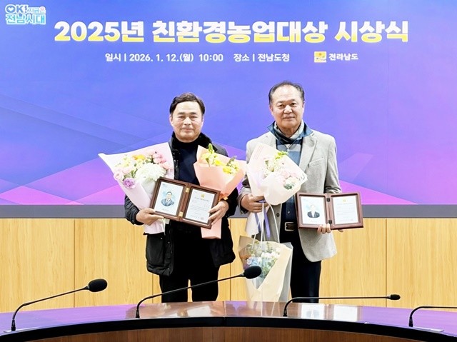 [위키트리 광주전남취재본부 노해섭 기자]곡성군(군수 조상래)에서 친환경농업을 실천해 온 농업인 2명이 ‘2025년 전라남도 친환경농업대상’ 수상자로 선정됐다.