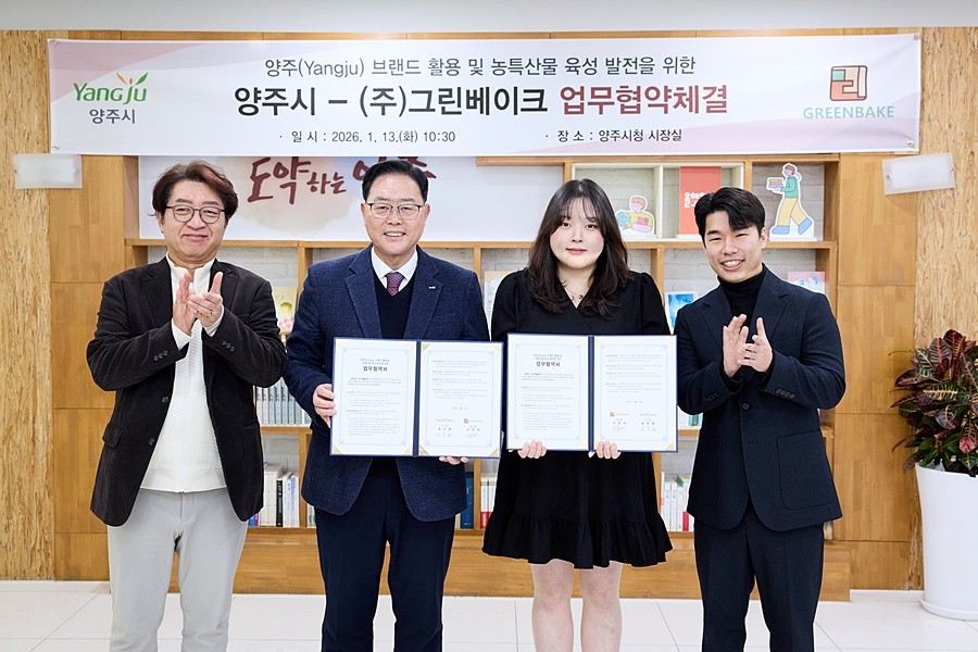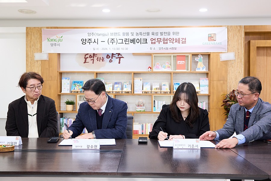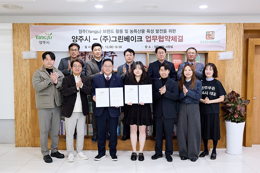 경기 양주시(시장 강수현)는 13일 오전 ㈜그린베이크(대표이사 기은서)와 ‘양주(Yangju) 브랜드 활용 및 농특산물 육성 발전을 위한 업무협약(MOU)’을 체결했다고 밝혔다.