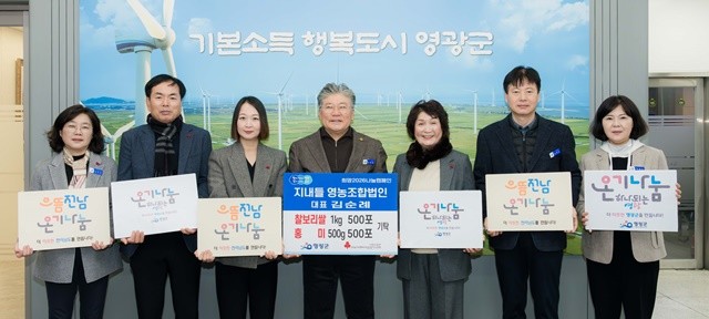 [위키트리 광주전남취재본부 노해섭 기자]영광군은 13일 지내들영농조합법인(대표 김순례)이 지역내 어려운 이웃을 위해 찰보리쌀과 홍미 각 500포씩, 총 1,000포(약 500만 원 상당)를 기탁했다고 밝혔다.