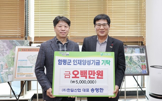 ㈜한길산업 송영한 대표, “지역 인재가 곧 회사의 미래”~함평군에 500만 원 쾌척