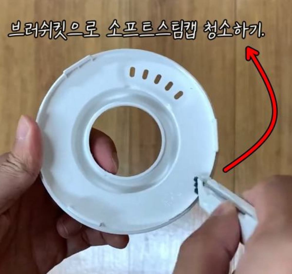 관통 청소 후에는 압력추와 스팀캡, 뚜껑 주변을 중성세제와 부드러운 도구로 닦아낸다. 칫솔이나 면봉을 쓰면 홈 안쪽까지 정리된다. 물기를 충분히 말린 뒤 원래대로 조립하고, 청소핀은 다시 밥솥 바닥 홈에 꽂아 보관한다. 이 과정에서 증기 배출구 아래쪽의 안전장치 구멍은 청소핀으로 찌르지 않는다. 해당 구멍은 압력 안전과 직결돼 있다.