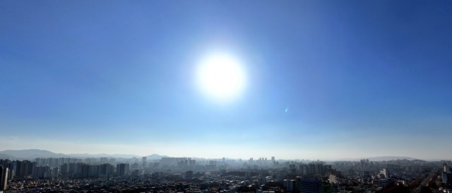 [위키트리 광주전남취재본부 노해섭 기자]전국 대부분 지역의 초미세먼지 농도가 ‘나쁨’ 수준을 보인 16일, 광주시 북구 용봉동 일대 하늘이 뿌연 먼지로 뒤덮여 있다. 기상청은 노약자와 호흡기 질환자 등에게 외출 자제와 마스크 착용을 당부했다.