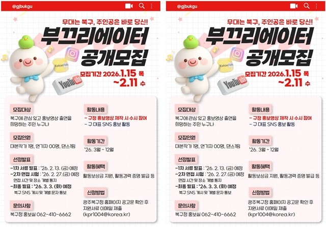 문인 북구청장은 “부끄리에이터는 주민이 홍보의 주체로 참여하는 소통 행정의 상징”이라며 “주민의 일상과 공감이 담긴 콘텐츠를 통해 구정이 더 가깝게 전달되길 기대한다”고 말했다.
