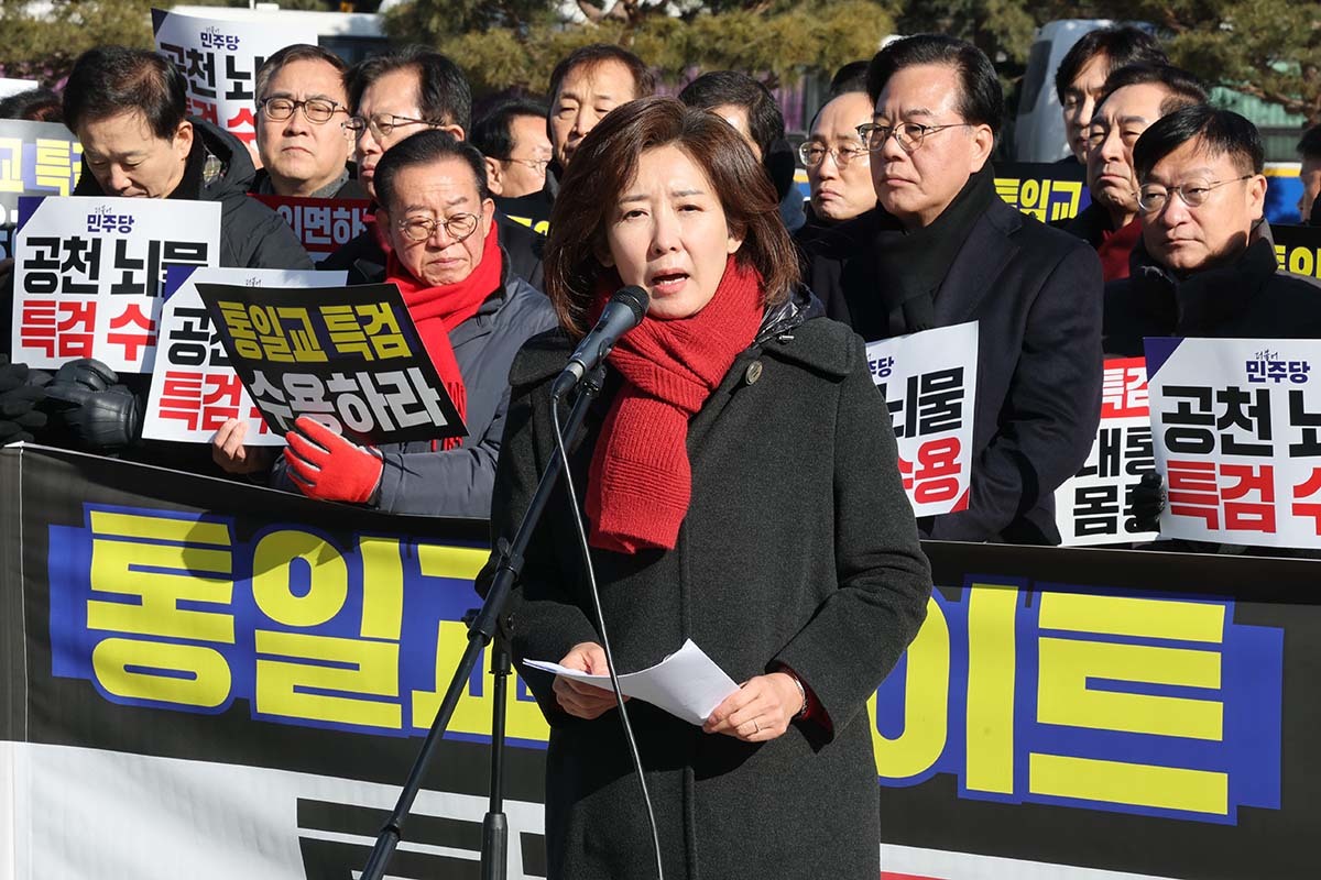 송 원내대표는 신천지 유착 의혹에 대해서도 정면 돌파 의지를 보였다. 그는 "우리 당 중진 의원이 신천지와 유착관계가 있는 듯한 뉘앙스를 풍기는 보도가 있었다"며 "좋다. 우리 당이 관련됐다고 생각하는 그대로 신천지 특검을 하자"고 했다. 또한 "신천지 관련 내용으로 우리 당에 문제가 있어서 특검을 회피하는 것 아니냐는 프레임을 만들 수 있을 텐데 전혀 아니다"라고 주장했다.