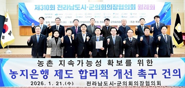 전라남도시군의회의장협의회는 “농지은행 제도가 본래의 취지에 맞게 농촌 현장의 현실을 반영하는 제도로 개선돼야 한다”며“앞으로도 지역 농업인의 삶과 직결된 제도 개선 과제에 대해 지속적으로 목소리를 내겠다”고 밝혔다.