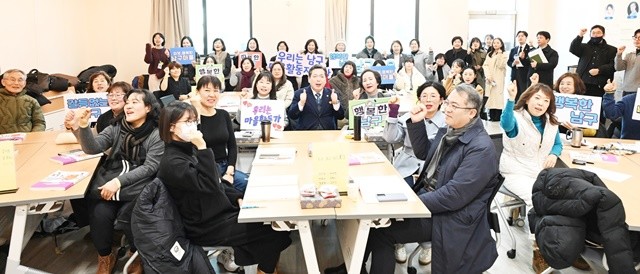 [위키트리 광주전남취재본부 노해섭 기자]21일 오전 (사)남구도시재생마을협력센터 교육장에서 ‘제4기 마을활동 지원전문가 양성교육’이 진행된 가운데 김병내 광주시 남구청장과 마을활동가들이 기념 촬영을 하고 있다.