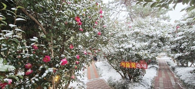 이번 축제의 주인공은 단연 애기동백이었다. 분재정원 내 식재된 약 2만 그루의 나무에서 일제히 터트린 4천만 송이의 붉은 꽃망울은 3km에 달하는 숲길을 붉은 카펫처럼 수놓았다. 특히 하얀 눈이 내리는 날에는 붉은 꽃과 대비를 이루며 한 폭의 동양화 같은 장관을 연출해 방문객들의 탄성을 자아냈다.