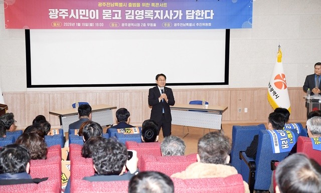 [위키 포토]강기정 광주광역시장, 광주전남특별시 출범을 위한 톡 콘서트 참석