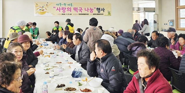 전남 함평군은 지난 21일 학교면과 엄다면에서 지역 어르신과 취약계층 400여 명을 모시고 ‘사랑의 떡국 나눔 행사’를 열었다고 22일 밝혔다.