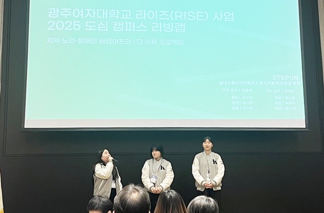 [위키트리 광주전남취재본부 노해섭 기자]광주여자대학교(총장 이선재) 실내건축디자인학과와 물리치료학과는 홀리데이인 호텔 세미나실에서 열린 2025 RISE 사업 ‘도심 캠퍼스 리빙랩 성과공유회’에 광주여대 대표로 참석하여 성과발표를 진행했다고 23일 밝혔다.