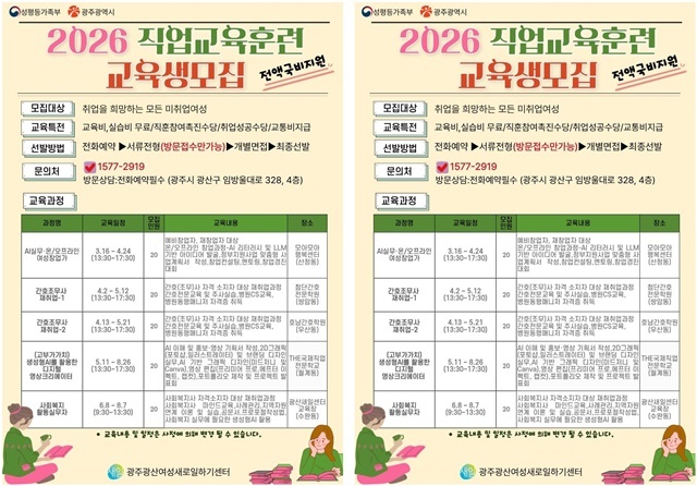 자세한 사항은 광주광산여성새로일하기센터 홈페이지 또는 전화문의로 확인하면 된다.