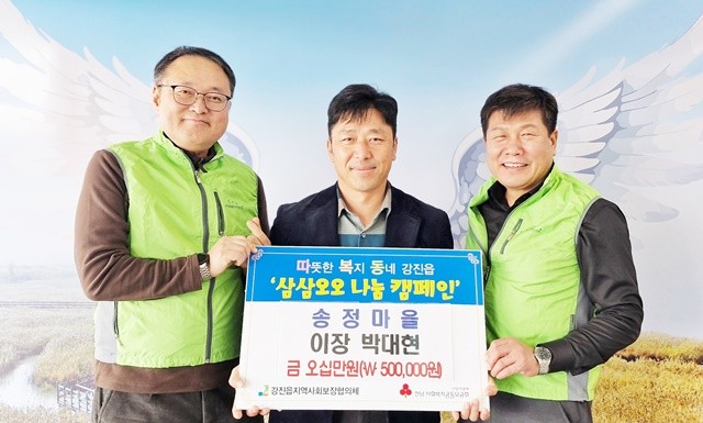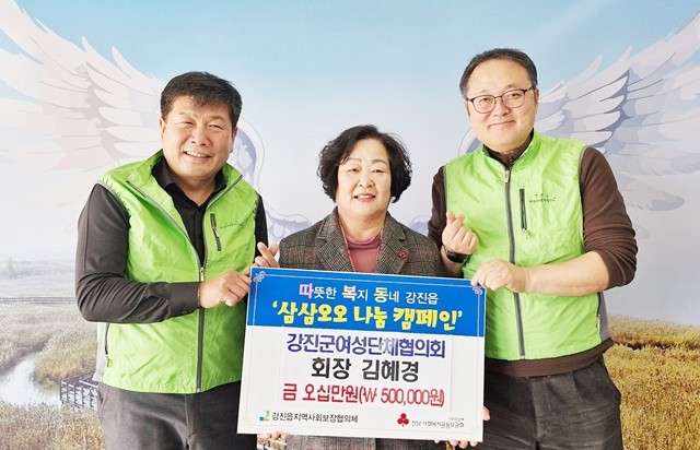 임창복 강진읍지역사회보장협의체 공공위원장은 “삼삼오오 착한기부 나눔릴레이에 함께해 주신 기부자들께 감사드린다”며 “기탁된 성금은 이웃돕기성금 취지에 맞게 꼭 필요한 분들에게 투명하고 소중히 사용하겠다”고 말했다.
