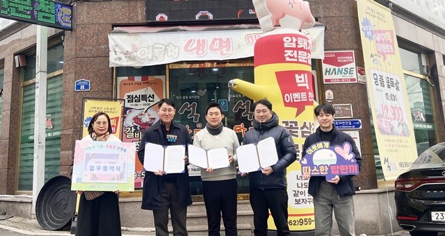 [위키트리 광주전남취재본부 노해섭 기자] 광주시 광산구 신창동(동장 김승일)은 추운 겨울철 지역 상가의 따뜻한 나눔을 이어가기 위해 석마루(대표 박경수), 연이네고깃집(대표 김수연)과 함께 ‘웃음꽃 천원밥상’ 신규 2개소 운영을 위한 업무협약을 추진했다고 밝혔다.