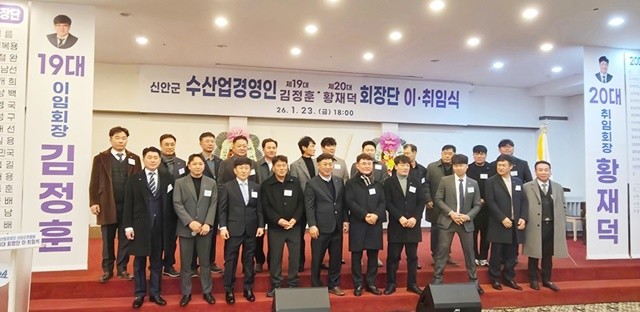 [위키트리 광주전남취재본부 노해섭 기자] (사)한국수산업경영인 신안군연합회는 지난 1월 23일, 목포 예술웨딩컨벤션 6층 연회홀에서 제19·20대 회장단 이·취임식을 개최했다.