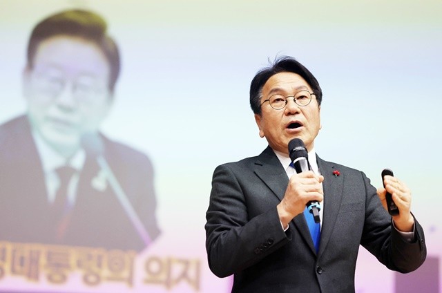 27일 광주 북구 양산동 문화센터 대강당에서 강기정 시장, 문인 북구청장, 신수정 시의장, 최무송 북구의회 의장 등 주민 300여명이 참석한 가운데 광주·전남 행정통합 시민공청회가 진행되고 있다.