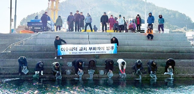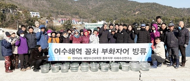 전남도해양수산과학원은 지난 20일을 시작으로 꼼치 부화자어 612만 마리를 바다로 보내는 방류를 성공적으로 마쳤다. 이어 27일에는 여수 돌산읍 두문포 선착장에서 어업인 등 30여 명이 참석한 가운데 835만 마리를 추가로 방류했다.