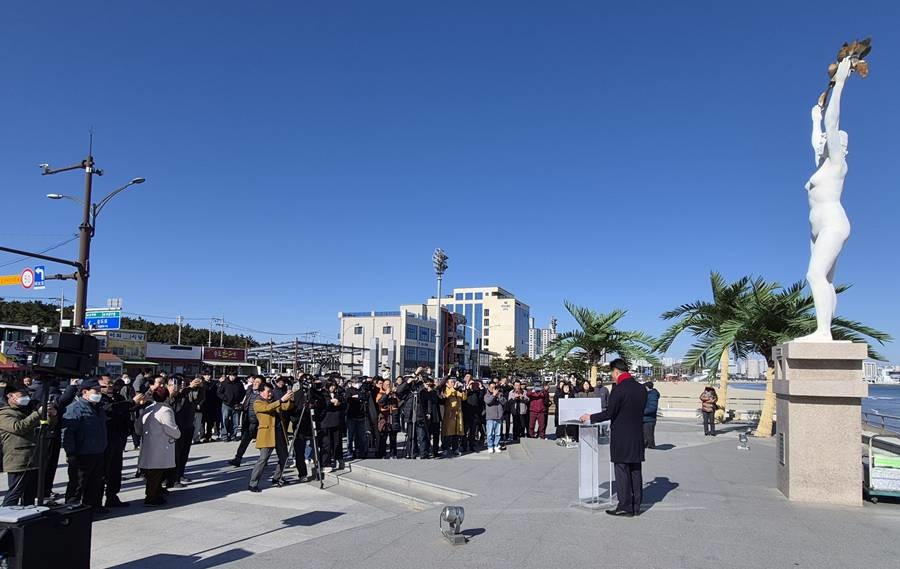 [포항=위키트리]이창형 기자=김일만 포항시의회 의장은 28일, 송도 ‘여신상’ 앞에서 포항시장 출마를 공식 선언했다.