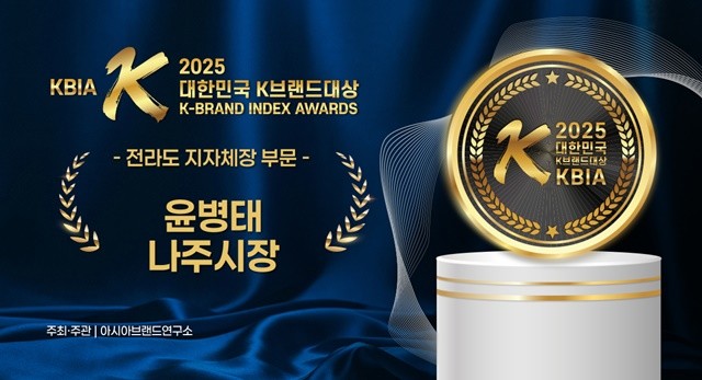 [위키트리 광주전남취재본부 노해섭 기자]윤병태 나주시장이 아시아브랜드연구소가 주관한 ‘2025 대한민국 K-브랜드대상’에서 전라도 기초자치단체장 부문 대상을 수상했다. 이번 수상은 1년간의 온라인 빅데이터 분석을 통해 도출된 결과로, 나주시의 브랜드 가치와 도시 경쟁력이 대외적으로 인정받았다는 평가다.
