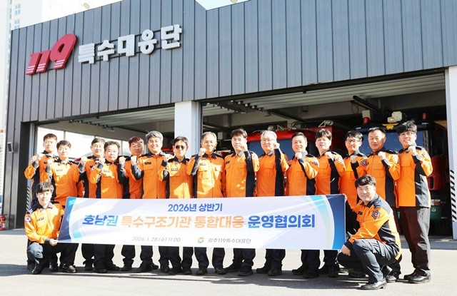 [위키트리 광주전남취재본부 노해섭 기자]광주광역시 119특수대응단은 28일 대응단 작전실에서 ‘2026년 상반기 호남권 특수구조기관 통합대응 운영협의회’를 개최했다.