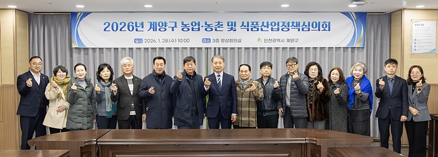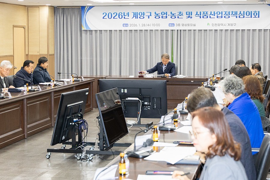 인천광역시 계양구(구청장 윤환)는 농업의 지속 가능한 발전과 농업인의 소득 안정, 안전한 농식품 공급 기반 마련을 위해 지난 28일 구청 영상회의실에서 ‘2026년 농업‧농촌 및 식품산업정책심의회’를 개최했다.