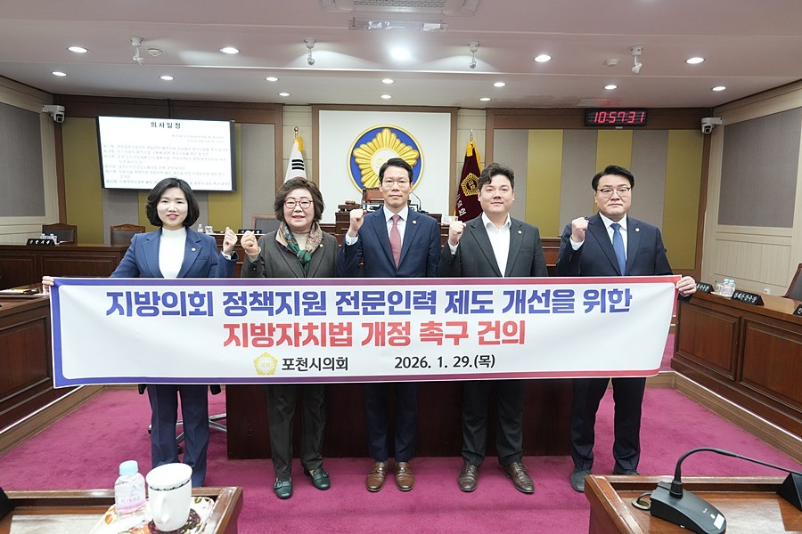 경기 포천시의회(의장 임종훈)는 29일 본회의장에서 제7차 본회의를 열고, 10일간의 일정으로 진행된 2026년 첫 회기인 제190회 임시회를 마무리했다.