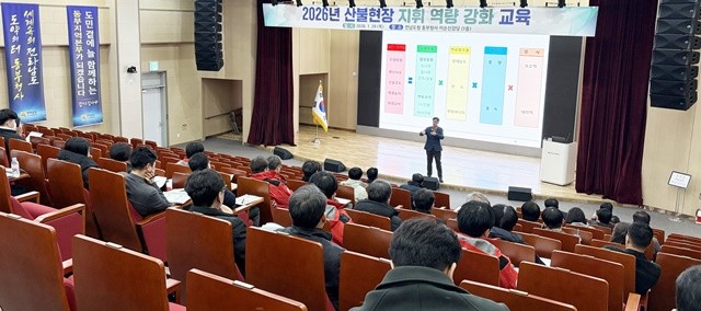 전남도는 29일 동부지역본부 이순신 강당에서 22개 시군 산림부서장과 담당 팀장 등 60여 명을 대상으로 산림청 주관 ‘2026년 산불현장 지휘 역량강화 교육’을 했다.