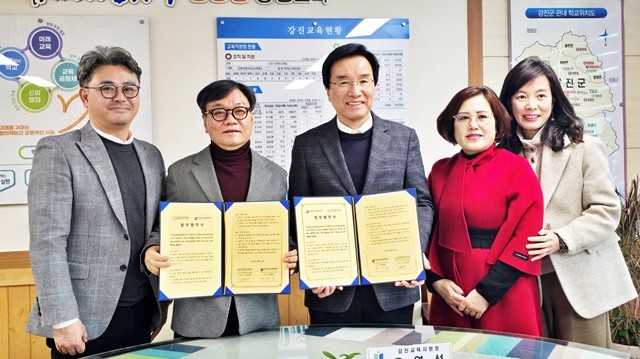 두 기관은 지난 26일 강진교육지원청에서 김기태 대표이사와 윤영섭 교육장 등 주요 관계자 10여 명이 참석한 가운데 ‘강진군 미래 인재 양성 및 교육 여행 활성화를 위한 업무협약(MOU)’을 체결했다고 밝혔다.