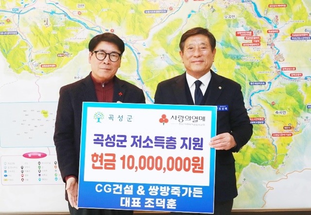 [위키트리 광주전남취재본부 노해섭 기자] 곡성군이 입면 CG건설 및 쌍방죽가든 조덕훈 대표가 군 지정 전남사회복지공동모금회에 1천만 원을 기부했다고 30일 전했다.